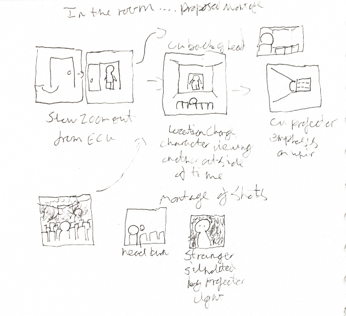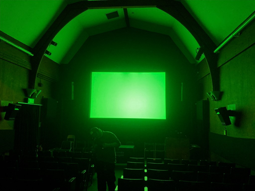 I think utilising the cinema as a “room out of time” allows me to be more flexible and creative rather than have it just be a room, i also like the aesthetics of the cinemaspace and I feel there’s a lot to play around with. As the footage from the first day was incomplete i instead decided to play a green screen and attempt to composite the footage over it in the edit. However upon reviewing the footage from day 2 i wasn’t able to transfer the establishing shot of the green screened cinema for whatever reason as such i’ve had to improvise. This was very disheartening as having the footage play on the screen was really the lynchpin of the sequence and as such it doesn’t really work without especially the climax where the boundaries blur. I’ve tried to make it work as best I can, I can’t separate the edit as it is from what i wanted it to be and as such im struggling to find a way around the gap.For the sound i wanted to play distorted audio over the real sequences and use natural audio over the dream sequences to make them more relaxed. Overall i feel using the cinema was a really exciting creative change from previous drafts and im excited to work more on it going forward but having it missing from this final piece makes the whole sequence collapse.